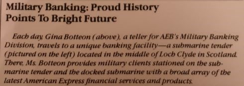 I worked at the Community Bank in Holy Loch between 1983 and 1992. A Community Bank is a Department of Defense (DoD) owned bank, provided by the US government to support military personnel with their banking needs whilst stationed overseas.