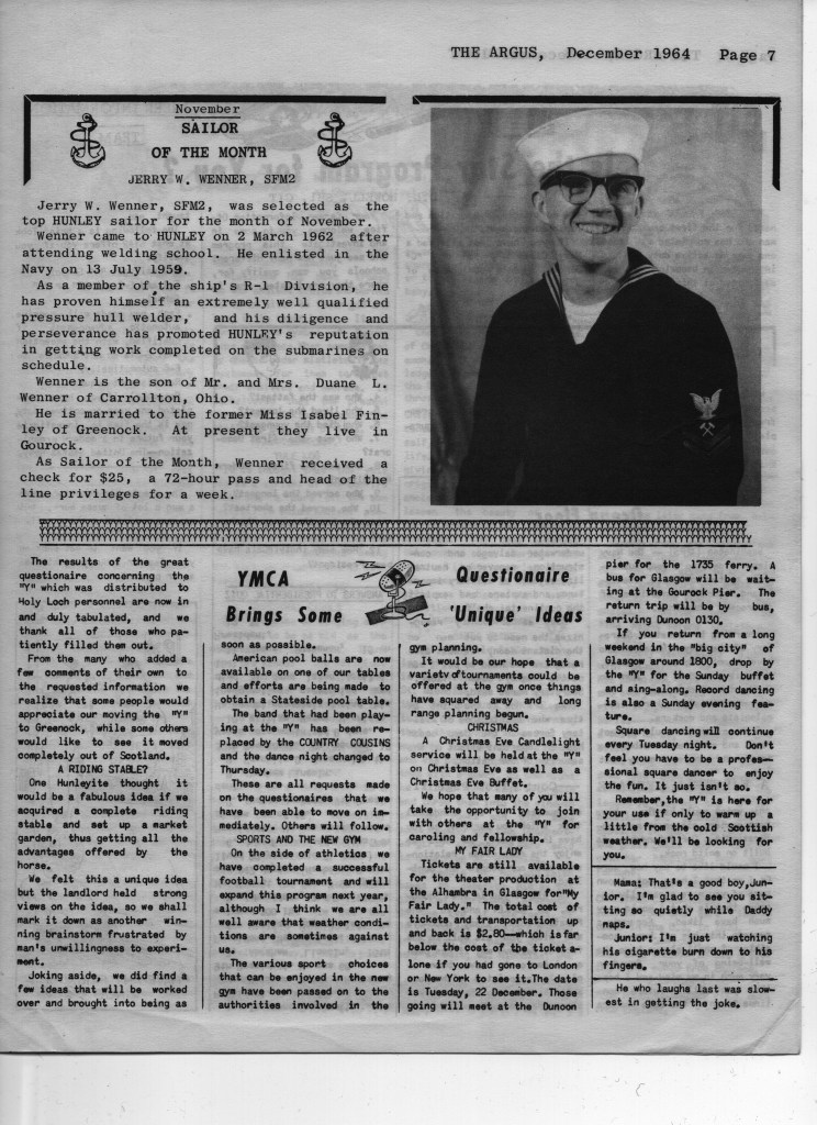 The USA had many bases across the world and it also had other military bases here in the UK, but Site1 Holy Loch was unique in that the personnel lived with and within the local community. On most other American military bases around the world, and indeed on many bases within America itself, families often lived separate from the local population especially where nuclear arms were involved. On these bases everything was provided by the military, children were educated by American teachers in the American school system; military personnel and their families celebrated American holidays, attended church and socialised with each other. While of course some people did meet with the locals, the situation was not structured for interaction, mostly for security purposes.